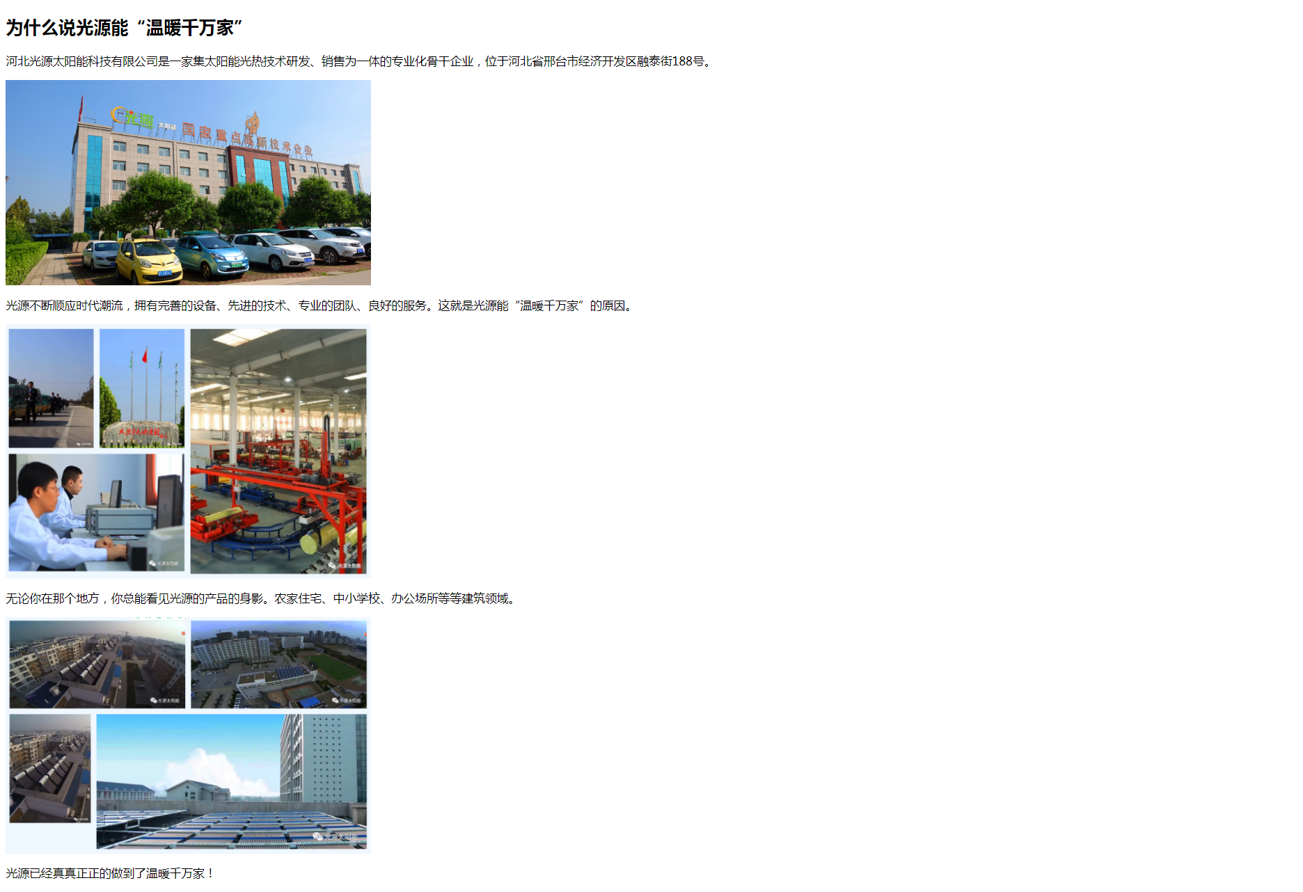 Copyright(C)2021 河北光源太陽能 E-mail: hbguangyuan@163.com 地址: 邢臺經(jīng)濟開發(fā)區(qū)王快鎮(zhèn)北屋村永安路2199號 關于光源 | 公司動態(tài) | 聯(lián)系我們 | 法律聲明
